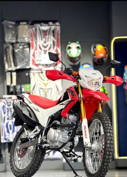 موتور پرواز GY200 با طراحی ارگونومیک و تایرهای استاندارد آفرود، سواری راحت و کنترلپذیر ارائه میدهد. باتری 12V-7Ah عملکرد سریع و مطمئن موتور را تضمین میکند و فاصله مناسب محور جلو و عقب، تجربهای متعادل و پایدار در مسیرهای ناهموار فراهم میسازد. این موتور برای کسانی که به دنبال سفرهای کوتاه و بلند در مسیرهای خارج جادهای هستند، مناسب میباشد.